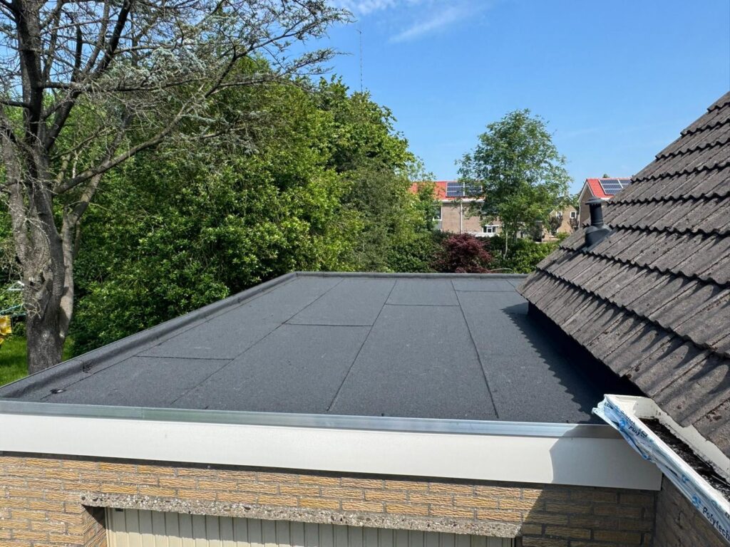 Bij deze klus hebben we kunststof windveren en goten van polytech geplaats en hebben we nieuw dakbedekking geleverd