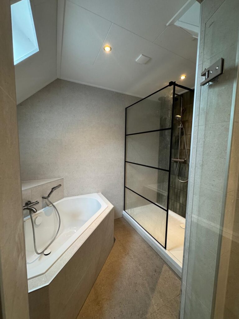 Bij deze verbouwing hebben we een oude garage verbouwd naar gelijkvloers slaapkamer met aangrenzend de badkamer